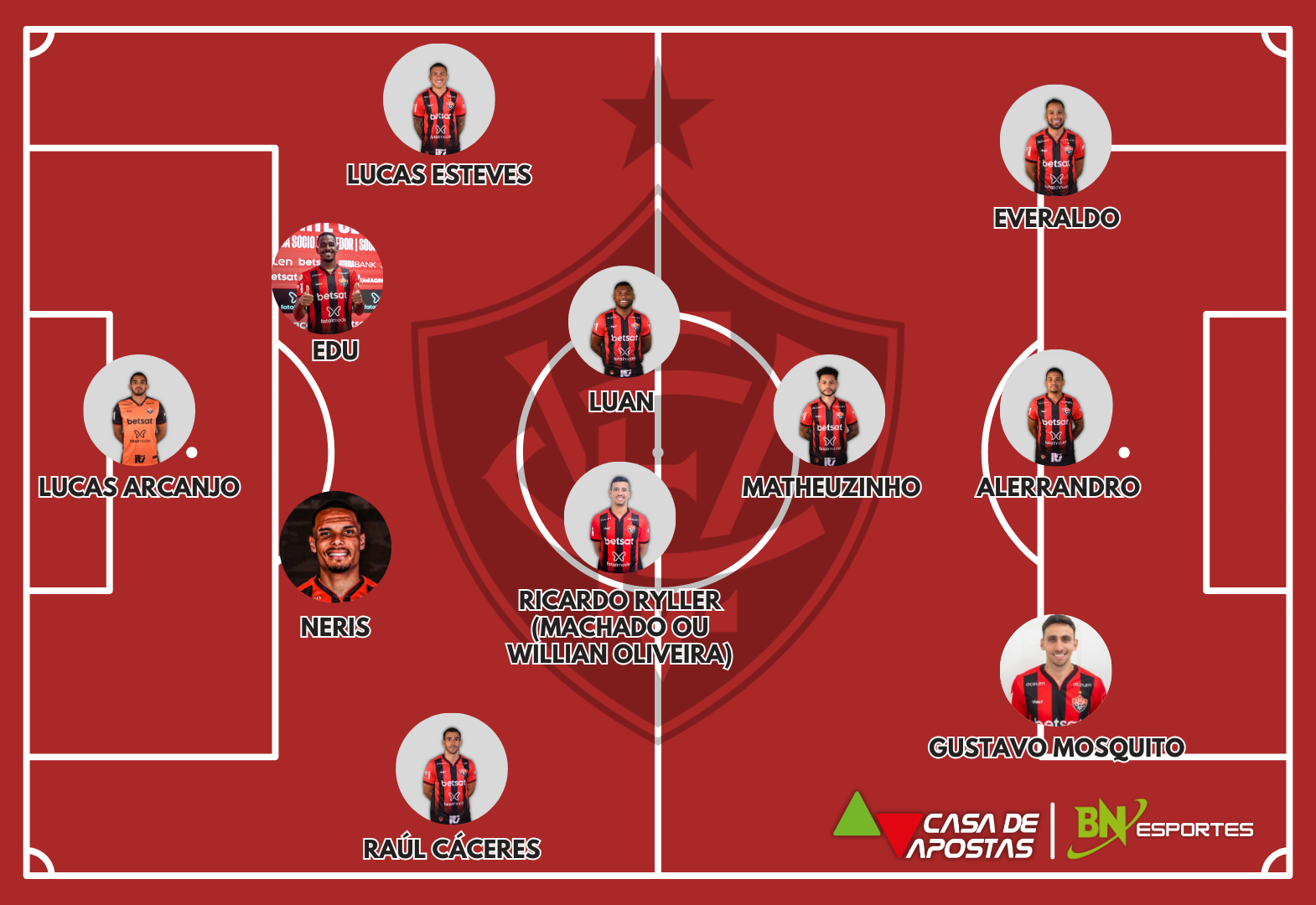 Vitória: Lucas Arcanjo; Raúl Cáceres, Neris, Edu e Lucas Esteves; Luan, Ricardo Ryller (Machado ou Willian Oliveira) e Matheuzinho; Gustavo Mosquito, Everaldo e Alerrandro. Técnico: Thiago Carpini.